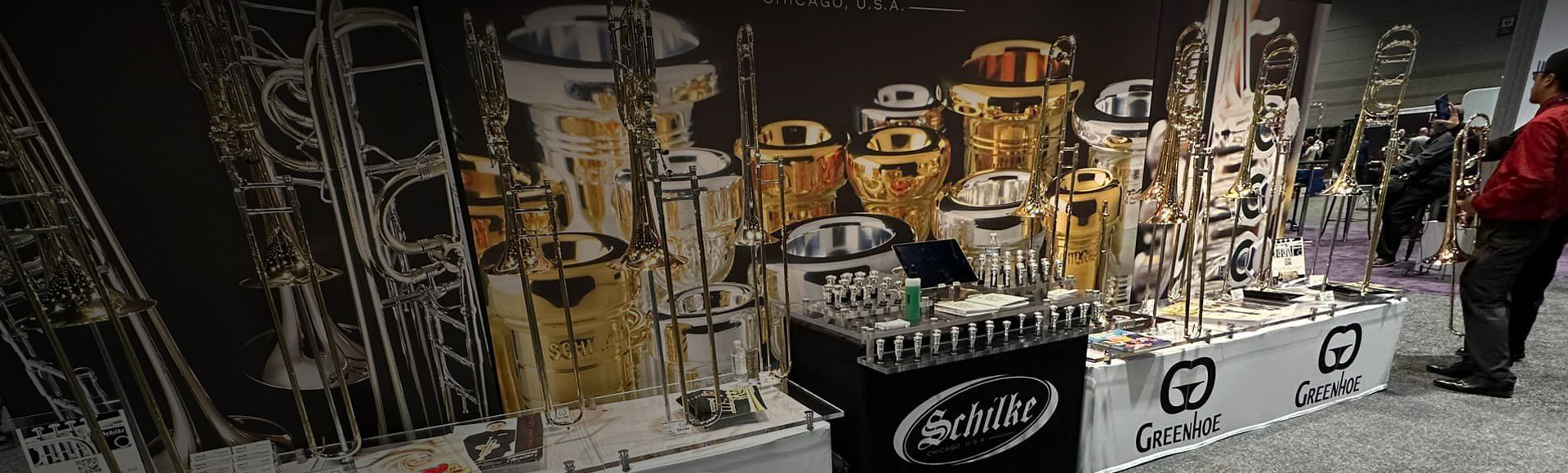 Our team travels to various music events and clinics throughout the year to demonstrate the superior sound of Greenhoe trombones, accessories, and mouthpieces. Visit our showcase booth at any of these events to experience our music products in person.